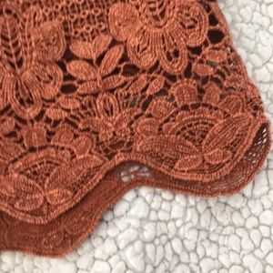 Beautiful cutout floral pattern shorts, drawstring st front, elastic waist. Size XS, has stretch