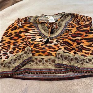 AFA Kaftan Leopard Print Tunic Top cover up M