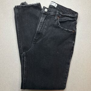 A&F Ankle Straight Ultra High Rise 28 Regular Washed Black Ripped