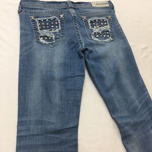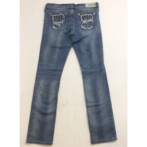 * Affliction "Jenna" Rhinestone and Studded Stretch Denim Blue Jeans