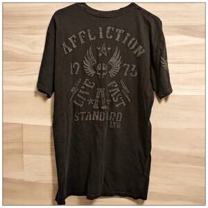 AFFLICTION Live Fast Black Leather Graphic Print on Black Thick Stitch T-Shirt