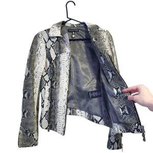 AFFLICTION Sinner 2 Snakeskin jacket faux leather moto jacket monochrome