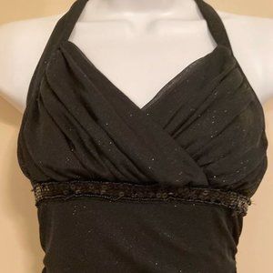 GENERALLY GOOD CONDITION - SIZE SMALL - BLACK w/ LIGHT GLITTER - ASSYMETRICAL CASCADING FRONT TO BACK - CITY TRIANGLES - this was worn a few times; it is undoubtedly spectacular. Nonetheless my closet just isn’t big enough for me to maintain my shopping addiction at its current rate and be able to retain all lovely things I’ve ever bought. I’m in search of a new home for this item with a new owner who has the time to give it the attention it deserves. A few threads are loose, the inside tag was itchy so I cut it off, but that’s all that make this item less then perfect condition. Coming from a PET FREE, SMOKE FREE environment. Cleaned, washed and treated (If needed) prior to packaging up for shipment. NO CASHIERS CHECKS, I will only make sales through this site only, so don’t waste your time trying to scam me.