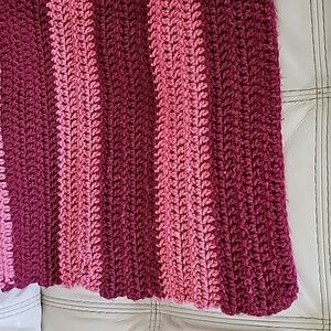 AFGAN, hand-made crochet. Beautifully done. Wine and pink color. Striped.