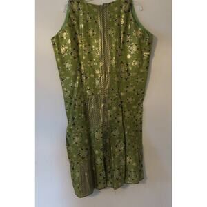 AFRICAN Handmade Ankara Dress Kaftan Mid/Knee Length Green/Brown Floral Ethnic