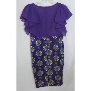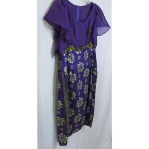 AFRICAN Handmade Ankara Dress Mid Length Short Sleeve Purple/Green with Gems