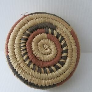 AFRICAN/NIGERIAN Hand Woven Basket Grass Tribal Ethnic with Lid and Hanger