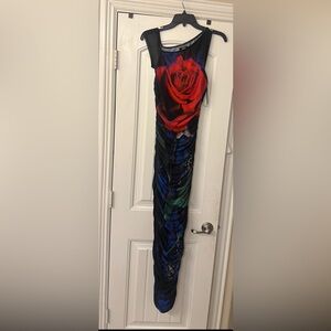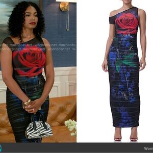 AFRM Biona Printed One-Shoulder Ruched Mesh Maxi Dress in the Realism Rose print.
