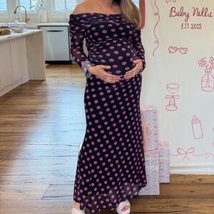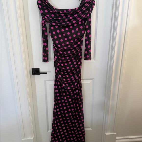 Chic long sleeve dress with playful pink polka dots. Perfect for stylish outings.