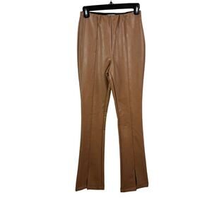 AFRM Adela Vegan Leather Split Leg Pants - Tan - Size S Pull on