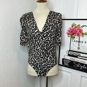 AFRM Alexa Bodysuit Blouse in Spring Leopard Size XS