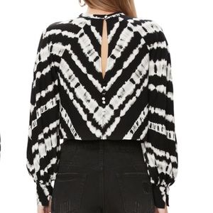 AFRM | Balloon Long Sleeve Black & White Chevron Tie Dye Chase Crop Top Small