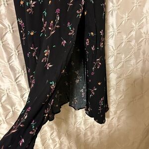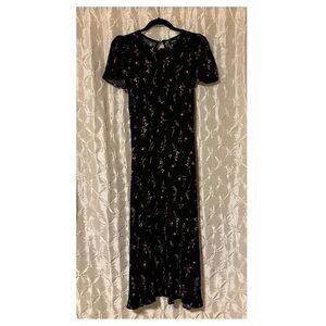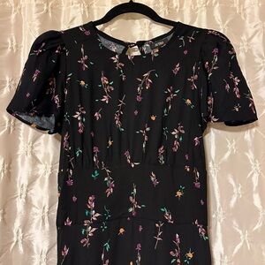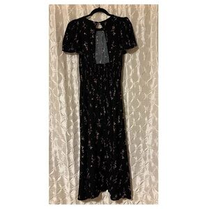 AFRM Black Floral Jamie Midi Dress Open Back Puff Sleeve