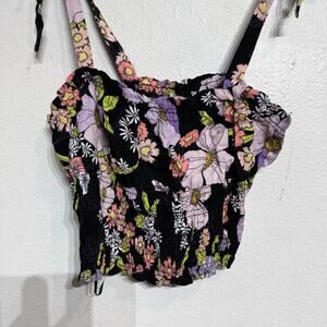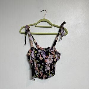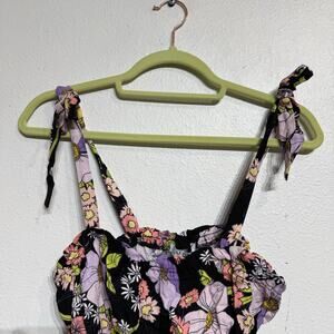 AFRM Black Floral Stein Smocked Crop Top Sz M NWT