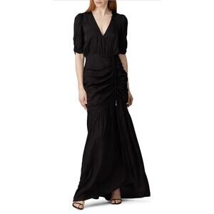 AFRM Black Maxi Nile Dress Snake Jacquard Print Short Sleeve Ruching Cocktail M