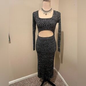 AFRM Black, White & Charcoal Textured Knit Sky Midi BodyCon Cutout Dress, size M