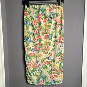 AFRM Blue and Green Floral Midi Skirt With Elastic Waist Size Small Petite