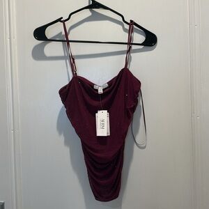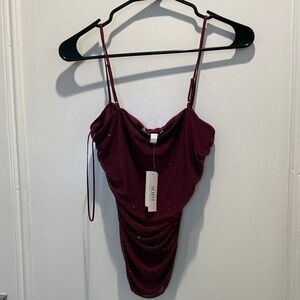 Elegant burgundy top with beaded accents. Perfect for special occasions.