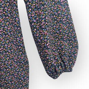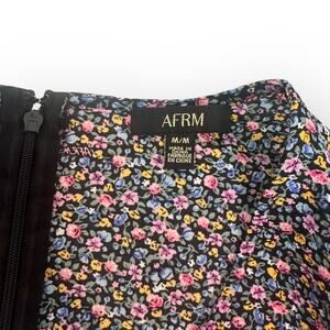 AFRM Button Front Puff Sleeve Floral Maxi Dress Size M Black Micro Floral Multi