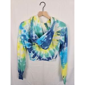 AFRM Cropped Hoodie XS Tie Dye Blue Yellow Cotton Blend Sweatshirt