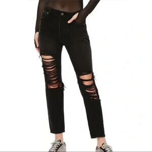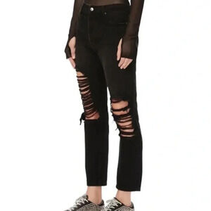 AFRM Cyrus Super High Rise Crop Jean Black Distressed NWT
