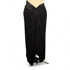 AFRM Delmi Ruched Velvet Midi Skirt Black Size M High Slit Revolve NWT