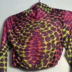 AFRM Dionne neon crop top mock neck polka dot festival mesh top small