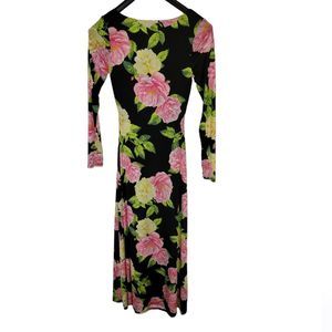 NWT AFRM Gigi Floral Cutout Midi Dress Black & Pink Size Small onxy black, large pink and yellow floral allover print, front cutout, long sleeve, stretch fabric, square neck, midi length, pullover, lined, pit to pit 17" length 55" no material tag, excellent condition (N19)😊