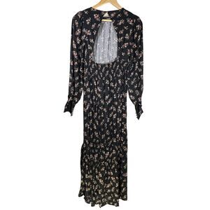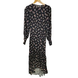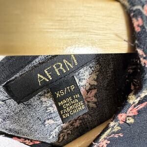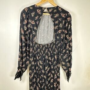 AFRM Gilda Back Cutout Dress black floral midi puff sleeve womans XS