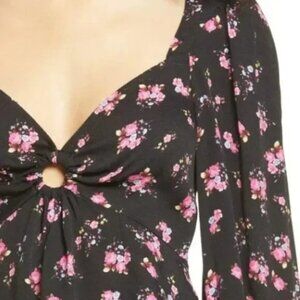 AFRM hart black floral keyhole peplum blouse. Side zipper closure.