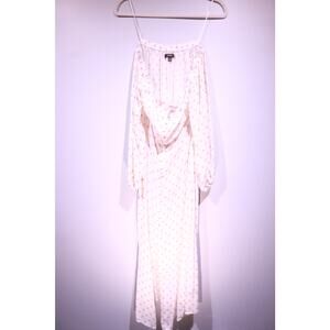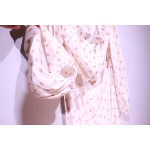 AFRM Ivory Polka Dot Button Front Dress – Drape Neck Long Sleeve – Size XS