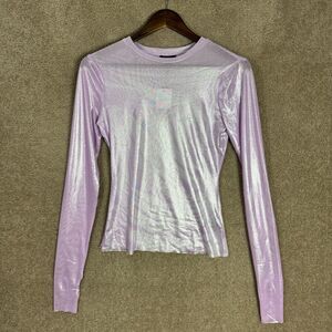 AFRM Kaylee Top Womens Medium M Orchid Shine Drape Metallic Long Sleeve Mesh NEW