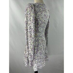 AFRM Los Angeles Cut Out Dress White Purple Floral XS Mini Long Sleeve