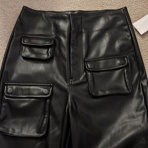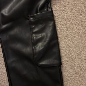 Cool faux leather pants. Snaps on pockets. Waist across 14 inches. Inseam 29.5 inches