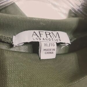 Two-piece long sleeve top and pencil skirt set by AFRM, features a sophisticated long sleeve design, perfect for any occasion. The top is XL and somewhat sheer; the skirt is pullon style and a size large.