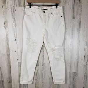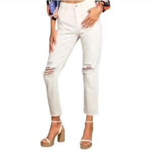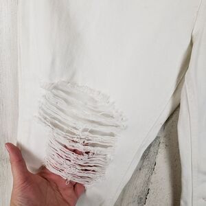 ~ Description: Ivory/off white denim distressed jeans, stretchy, 5 pockets
