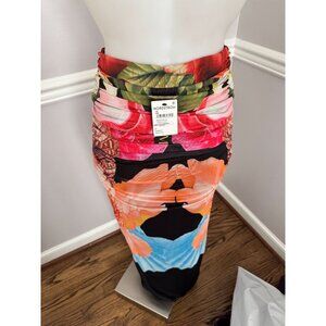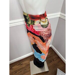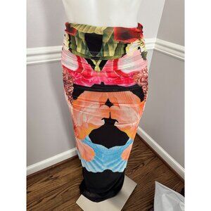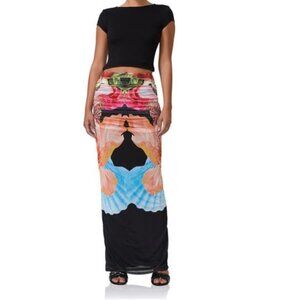 Vibrant maxi skirt with abstract patterns. Features a blend of colors for a bold look. Perfect for casual outings.