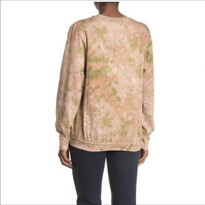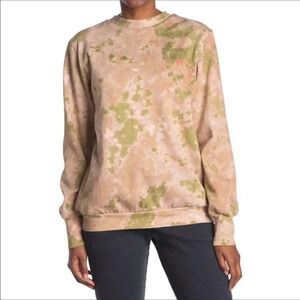 This AFRM sweatshirt features a tan and green tie dye print, a pullover fit, long sleeves and a crew neck.