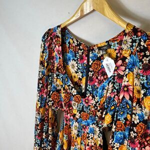 AFRM NWOT Monna Multicolored Floral Side Cutout Long Sleeve Mini Dress Size M