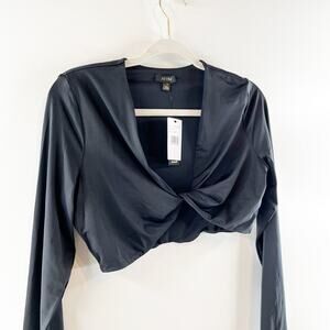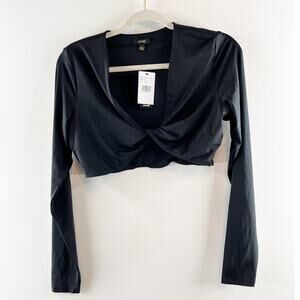 stretch, cropped, long sleeve, black, twist plunge front, going out, revolve, festival