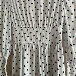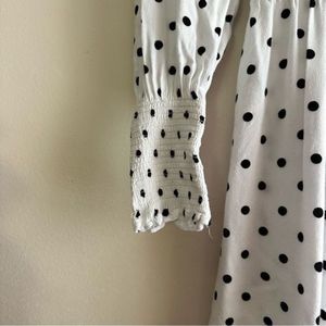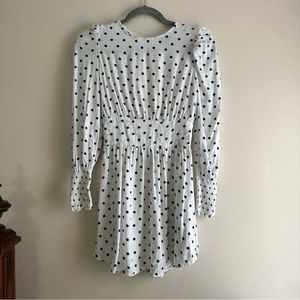 Long sleeve mini dress with slightly puffed sleeves and a polka dot pattern. In excellent condition.