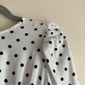 Long sleeve mini dress with slightly puffed sleeves and a polka dot pattern. In excellent condition.