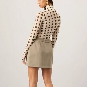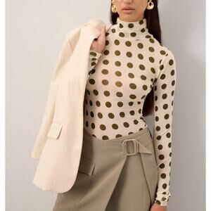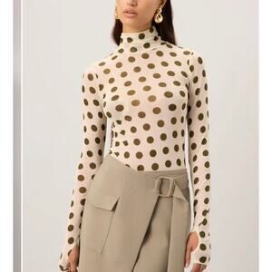 AFRM Polkadot Mesh Top Small Sheer Bodycon Long Sleeve Mockneck Thumbholes Olive