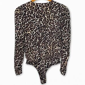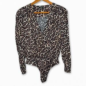 AFRM Revolve women's leopard print Nora plunging V long sleeve body suit SZ S