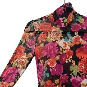 AFRM Shailene Floral Turtleneck Midi Dress Black Small