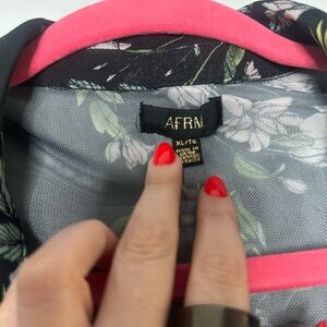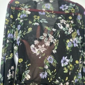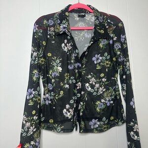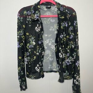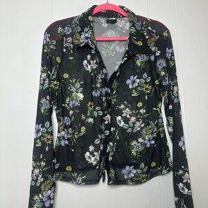 AFRM Sheer Mesh Floral Button Down Blouse – Black Purple Green XL Y2K Romantic