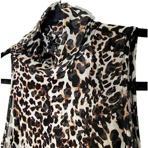 AFRM Sheer Sleeveless Cowl Neck Pullover Top XS/Extra Small Leopard Print NWT
