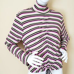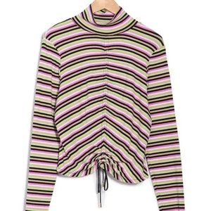 AFRM Striped Mollie Long Sleeve Drawstring Ribbed Knit Crop Top SZ 3X