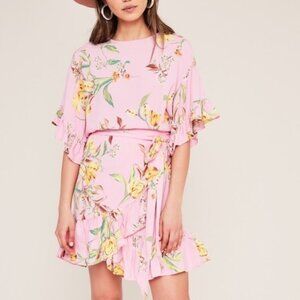 AFRM Tokyo Ruffle Sleeve Pink Minidress Floral