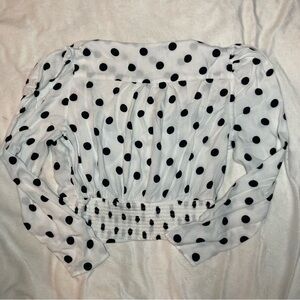 AFRM White and Black Puff Sleeve Fitted Blouse Size Large